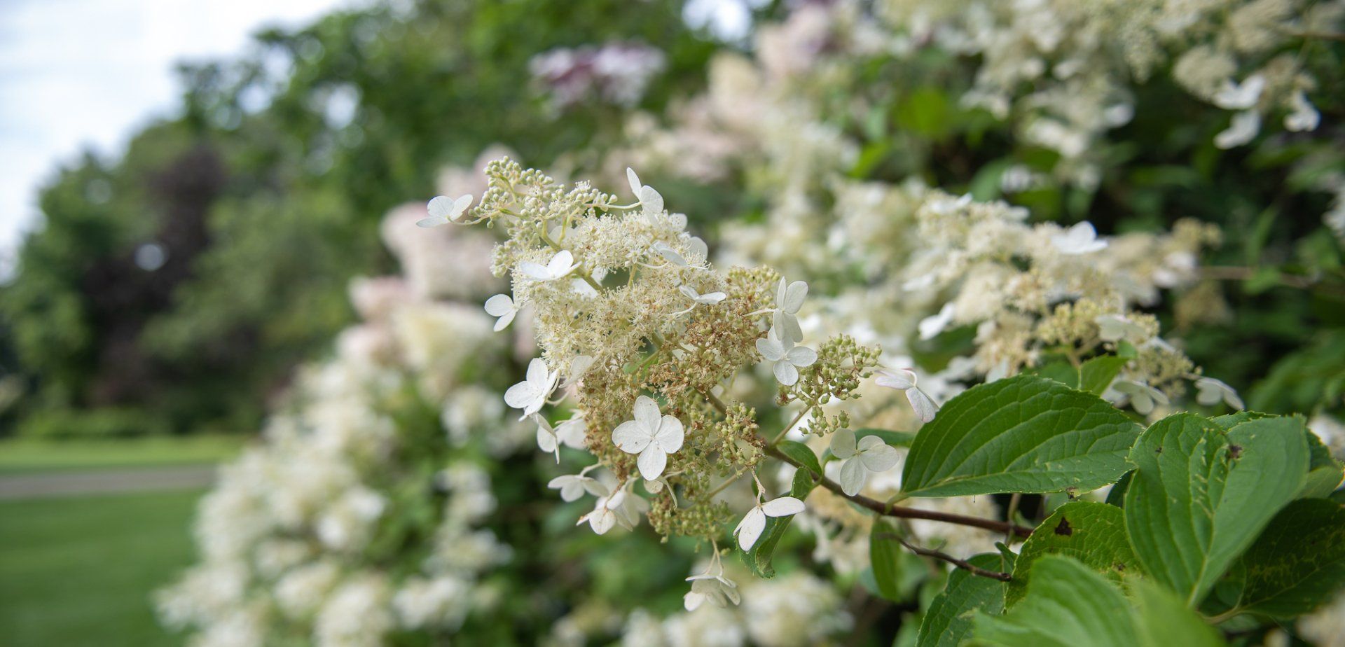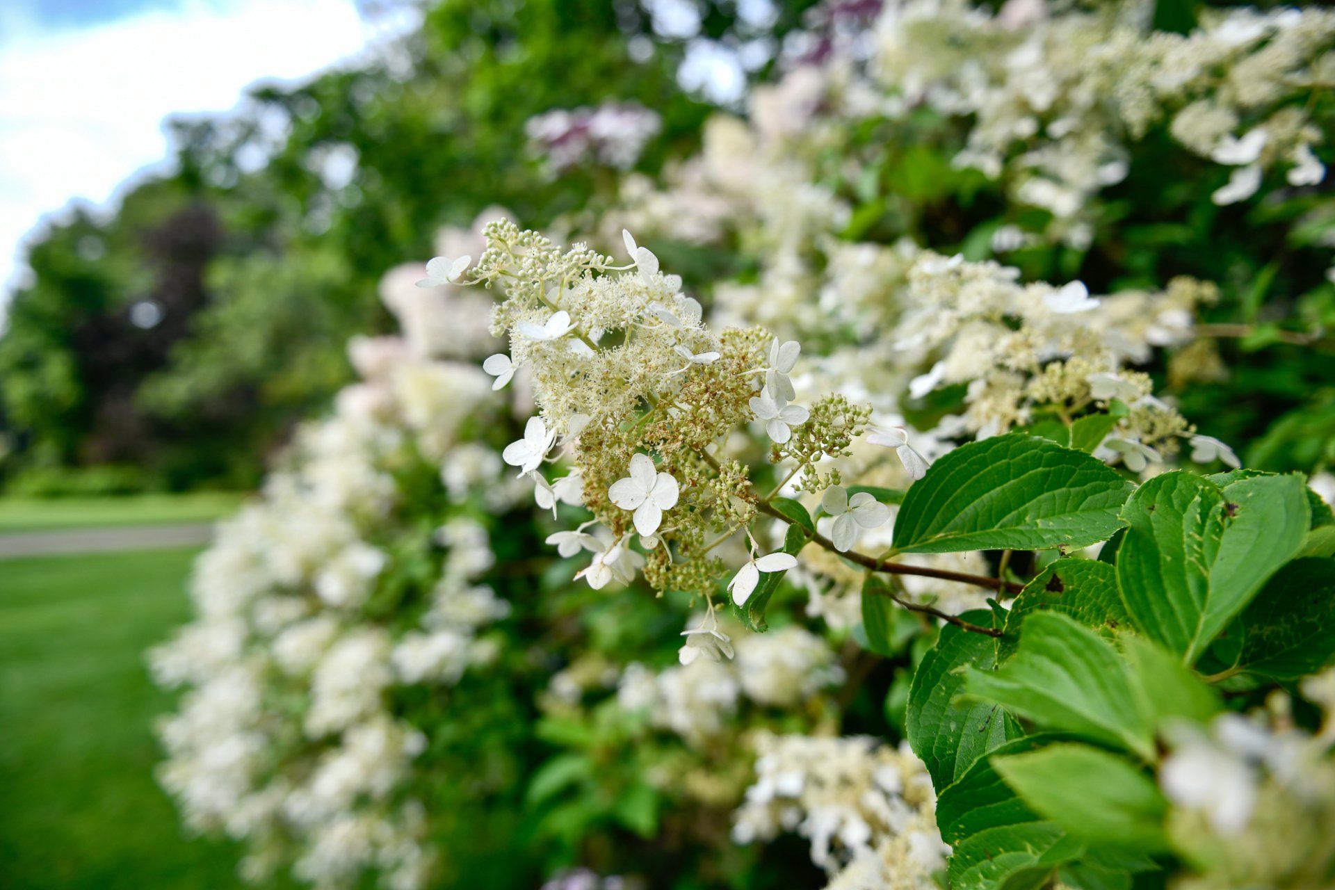 La collection d'hydrangéas de plus de cents variétés est présente dans le parc et fait l'objet de toutes les attentions des propriétaires.